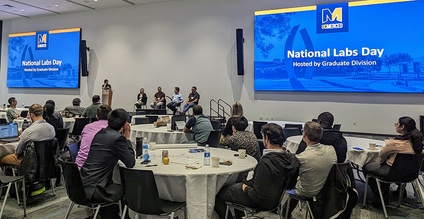 UC Merced’s Graduate Division hosted its third National Labs Day on April 21. The goal of the day-long event is to connect graduate students and postdoctoral scholars with researchers from across the nation, including campus alumni.